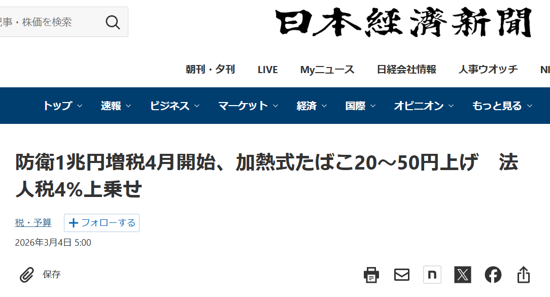 この時期、年度替わりを機に行われる増税のニュースを目にします。