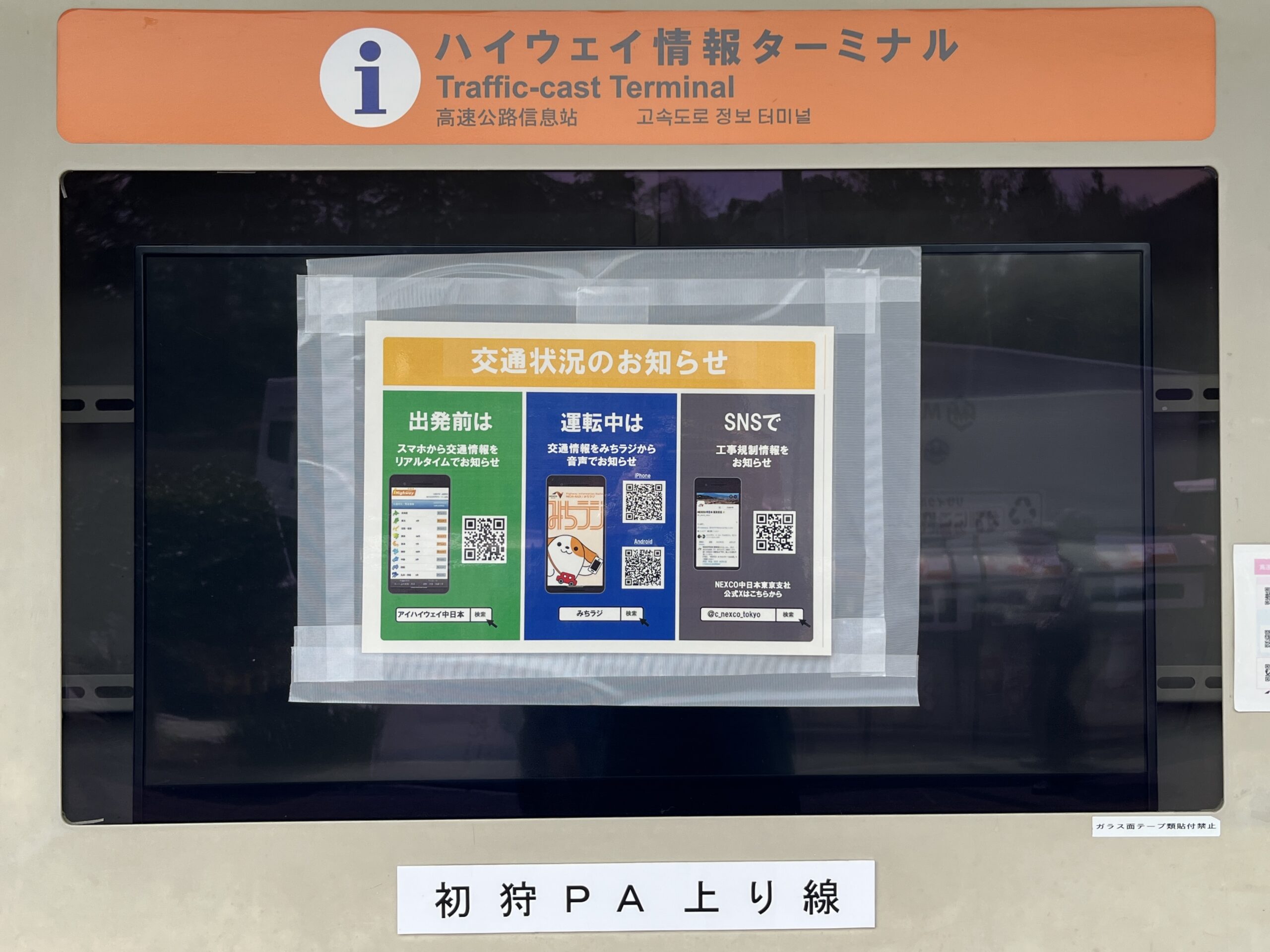 このため、パーキングで休憩をとるときは、この先の渋滞を確認するため掲示板を見ることが多いのですが、ここ最近、写真のように掲示版での情報提供は停止されています。